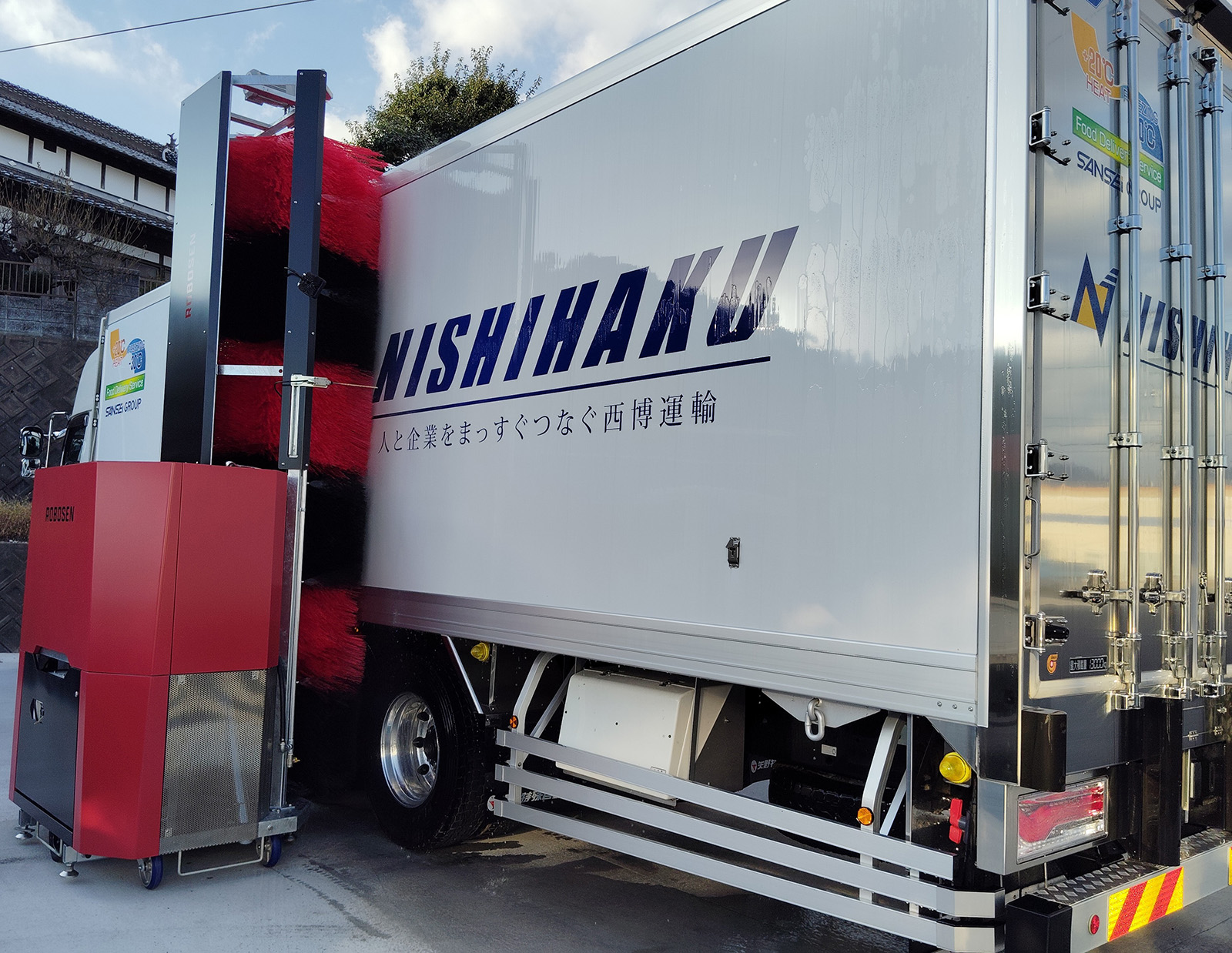 1121日大安に、本社営業所と小郡営業所にロボット洗車機(ROBOSEN)を導入しました。今後もピカピカの車両で全国に商品を運びます。
